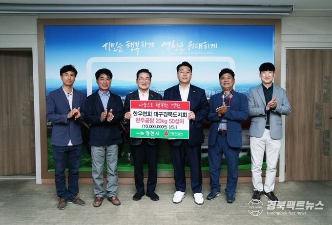 경북팩트뉴스 남유신 기자 | 영천시는 13일 전국한우협회 대구경북도지회(도지회장 장성대)가 영천시장애인종합복지관에 1000만원 상당의 한우곰탕 20kg 50상자를 기탁했다고 밝혔다.
