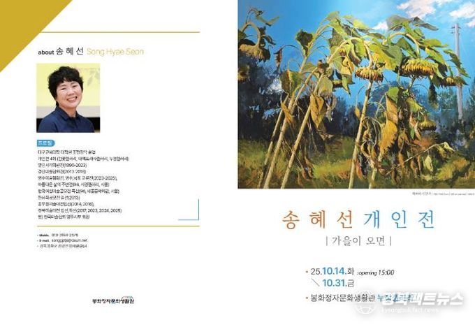 경북팩트뉴스 남유신 기자 | 봉화정자문화생화관은 10월 14일부터 31일까지 누정갤러리에서 송혜선 작가의 개인전 '가을이 오면'을 개최한다.