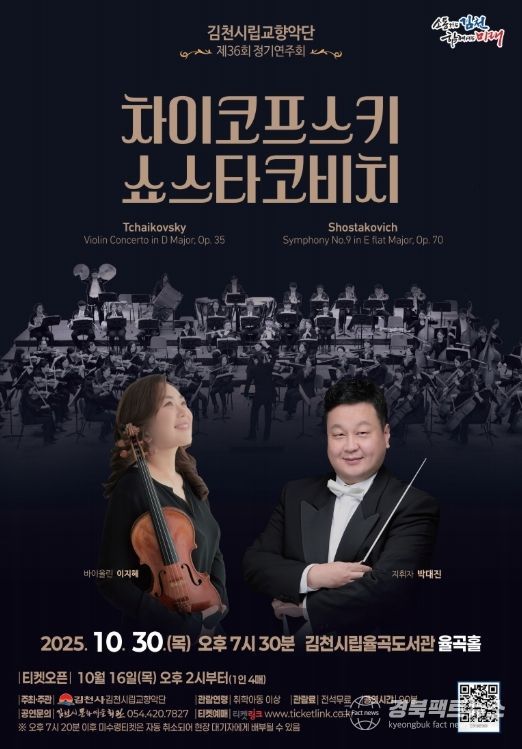 경북팩트뉴스 남유신 기자 | 김천시문화예술회관은 10월 30일 목요일 오후 7시 30분에 시립율곡도서관 2층 율곡홀에서 시립교향악단 제36회 정기연주회를 개최한다.