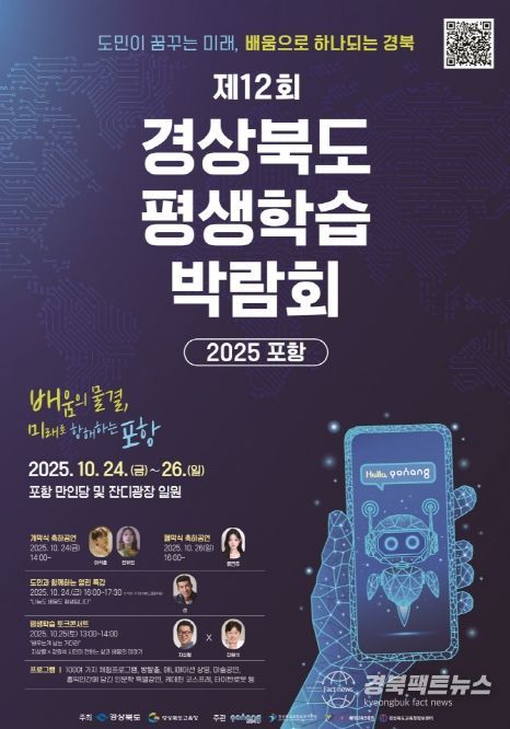 경북팩트뉴스 남유신 기자 | 포항시는 오는 24일부터 26일까지 사흘간 만인당 및 잔디광장 일원에서‘제12회 경상북도 평생학습박람회-2025 포항’을 개최한다고 밝혔다.