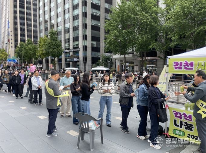 행사를 주최한 권영복 김천시 서울사무소장은 “서울 도심 한가운데에서 김천의 명품 과일을 소개할 수 있어 뜻깊다.”라며, “이번 행사를 계기로 샤인머스켓하면 김천이 바로 생각날 수 있도록 더 노력하겠다.”라고 밝혔다.