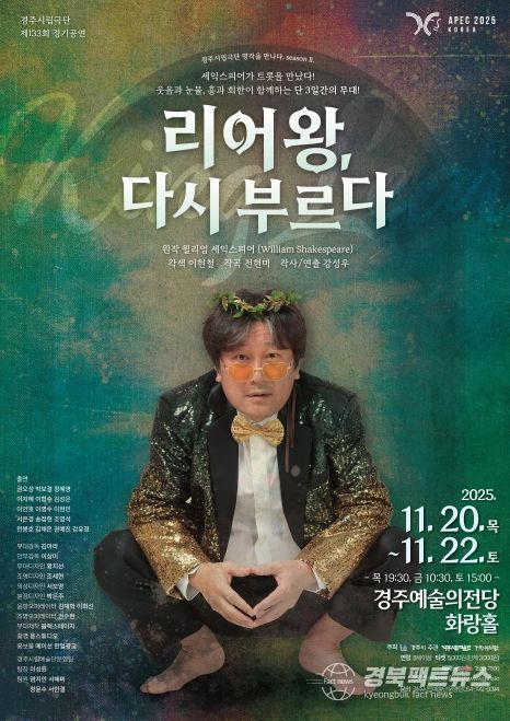 경북팩트뉴스 남유신 기자 | 경주시립극단(예술감독 강성우)은 오는 11월 20일부터 22일까지 3일간 경주예술의전당 화랑홀에서 제133회 정기공연 '리어왕, 다시 부르다'를 선보인다.