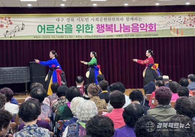 경북팩트뉴스 조현묵 기자 | 구미시는 지난 14일 노인종합복지관 3층 대강당에서 구미노인대학 입학 어르신 220여 명을 모시고 행복나눔음악회를 개최했다.