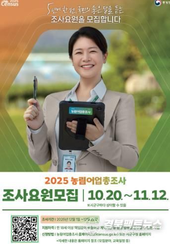 경북팩트뉴스 남유신 기자 | 김천시는 오는 12월 1일부터(온라인 조사는 11월 20일부터) 실시되는 2025 농림어업총조사의 성공적 추진을 위해 조사원과 관리자 등 조사 인력을 모집한다.