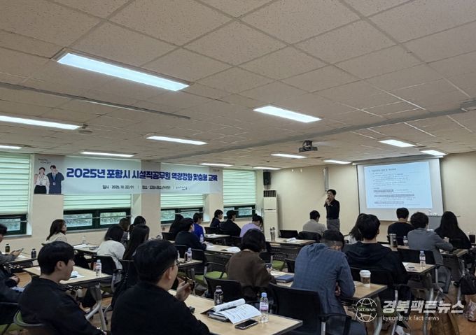 경북팩트뉴스 남유신 기자 | 포항시는 22일 포항시청소년수련관에서 시설직 공무원 30명을 대상으로 ‘시설직 공무원 역량 강화 맞춤형 교육’을 실시했다.