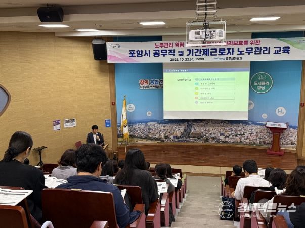 경북팩트뉴스 남유신 기자 | 포항시는 22일 뱃머리평생교육관에서 공무직 및 기간제 근로자의 복무·급여 등 노무관리 업무를 담당하는 공무원 100여 명을 대상으로 ‘노무관리 역량 강화 교육’을 실시했다.