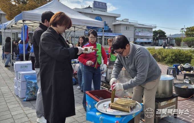경북팩트뉴스 남유신 기자 | 영천 스타사랑봉사단(단장 김서현, 후원회장 조삼열)은 31일 영천역 앞 광장에서 시민들을 대상으로 국밥 나눔 봉사활동을 펼쳤다.