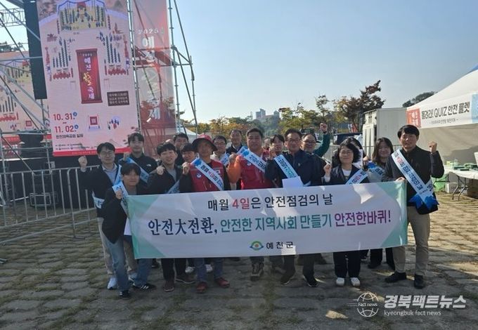 경북팩트뉴스 남유신 기자 | 예천군은 31일 오후 2시부터, 한천체육공원 일원에서 열리는 ‘2025 예천활축제&농산물축제’의 안전사고 예방과 방문객 안전의식 향상을 위한 안전점검 캠페인을 실시했다.