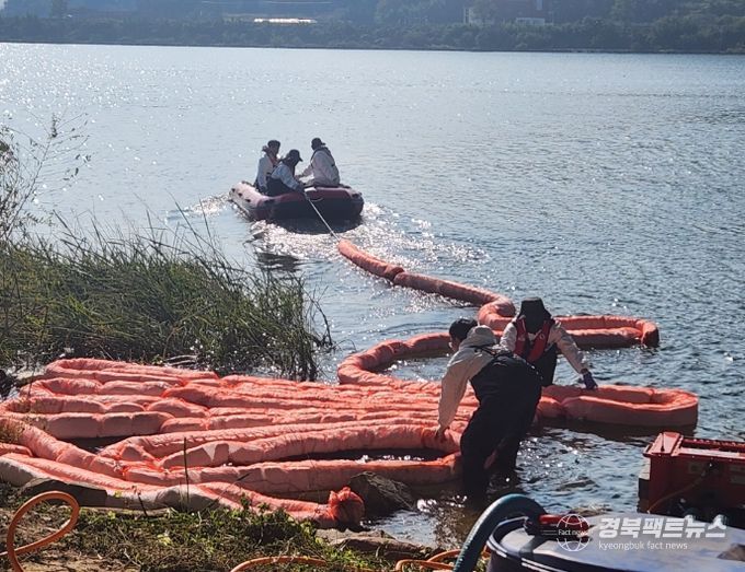 훈련은 탱크로리 추돌로 경우 2,000리터가 낙동강으로 유출된 상황을 가정해 진행됐으며, 초기 대응과 오염 확산 방지를 위한 기관 간 협조체계를 점검했다.