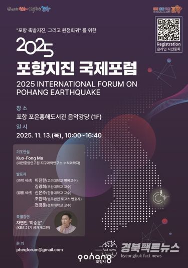 경북팩트뉴스 남유신 기자 | 포항시는 오는 13일 오전 10시부터 포은흥해도서관 음악강당에서 ‘2025 포항지진 국제포럼’을 온오프라인 병행 개최한다.