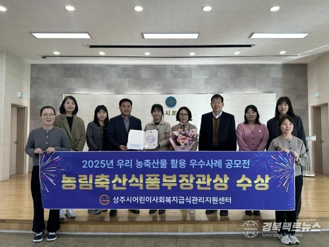 경북팩트뉴스 남유신 기자 | 상주시 어린이‧사회복지 급식관리지원센터가 지난 11월 6일 대한영양사협회가 주관한 '2025년 우리 농‧축산물 활용 우수사례 공모전'에서 농림축산식품부장관상을 수상했다.