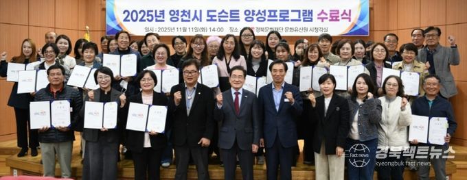 경북팩트뉴스 남유신 기자 | 영천시는 11일 경북문화재단 문화유산원 시청각실에서 ‘도슨트 양성과정 수료식’을 개최했다.