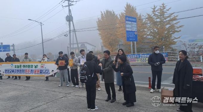 경북팩트뉴스 남유신 기자 | 경상북도영양교육지원청은 2025년 11월 13일 오전 7시 10분부터 영양여자중·고등학교 정문에서 2026학년도 대학수학능력시험에 응시하는 수험생을 대상으로 수험생 응원 행사를 진행했다.