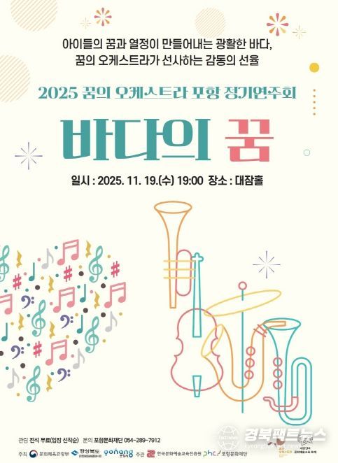 이번 공연은 포항 지역 아동·청소년으로 구성된 오케스트라 단원들이 1년 간의 음악적 성장을 무대 위에서 시민들과 나누는 뜻깊은 자리로, 그동안 쌓아온 실력을 생생한 합주로 선보일 예정이다.