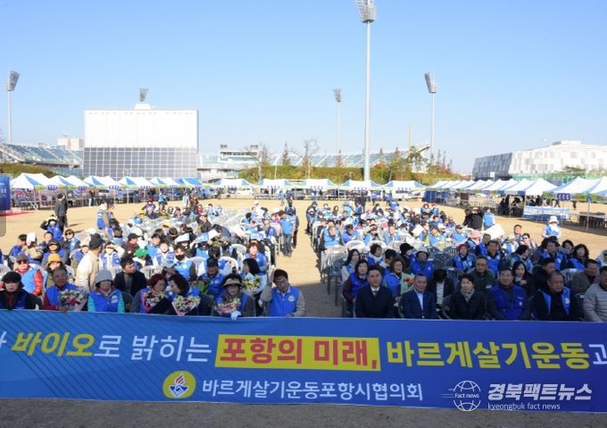 경북팩트뉴스 남유신 기자 | 포항시는 22일 바르게살기운동포항시협의회가 만인당 옆 잔디구장에서 회원 400여 명이 참석한 가운데 ‘2025 바르게살기운동 회원화합전진대회’를 개최했다고 밝혔다.