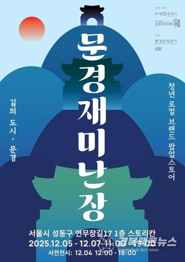 경북팩트뉴스 남유신 기자 | 문경시는 오는 12월 4일부터 12월 7일까지 4일간, 서울 성수동 스토리칸(연무장길17)에서 문경 청년 로컬 브랜드를 소개하는 팝업스토어‘문경재미난장’을 운영한다.