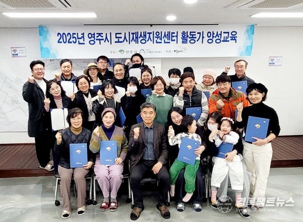 경북팩트뉴스 남유신 기자 | 영주시는 지난 28일 영주시 도시재생지원센터 2층에서 '2025년 영주시 도시재생지원센터 활동가 양성과정' 수료식을 열고, 교육을 이수한 수료생 20여 명에게 수료증을 전달했다.