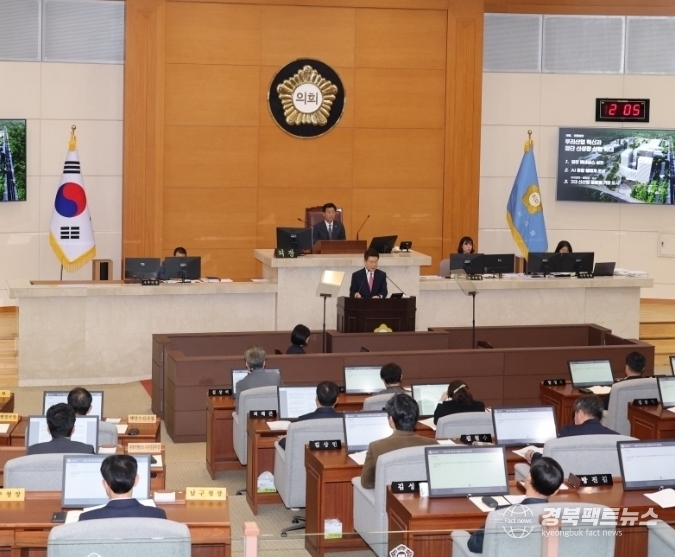 정원석 의원은 포항시 재정자립도·재정자주도 하락, 부채 증가, 세입 감소가 지방채 발행으로 이어지고 있다며 “재정 건전성이 흔들리고 미래세대 부담이 커지고 있다”고 강조했다. 그는 필수 대규모 사업 추진 시 수익성과 공공성을 철저히 검증하고 신중한 예산 운용을 주문했다.