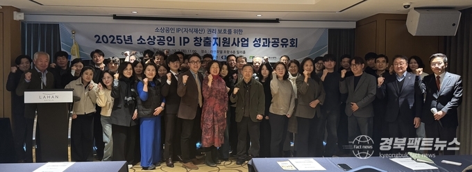 경북팩트뉴스 남유신 기자 | 경북지식재산센터(포항상공회의소·회장 나주영)는 2일 오전 11시 라한호텔 포항에서 도내 소상공인과 하양공설시장·황남상가시장·대해불빛시장 등 전통시장 관계자, 유관기관 관계자 등 40여 명이 참석한 가운데 ‘2025년 소상공인 IP창출지원사업 성과공유회’를 개최했다.
