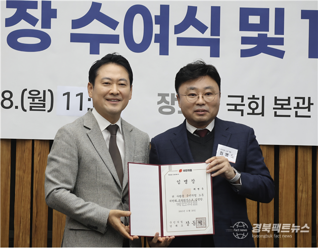 경북팩트뉴스 남유신 기자 | 국민의힘 노동위원회가 국토교통부노동조합 최초 3연임 위원장을 지낸 최병욱 전국퇴직공무원노조 위원장을 중앙당 노동위원회 부위원장으로 임명하며 공공노동 분야 확장에 나섰다.