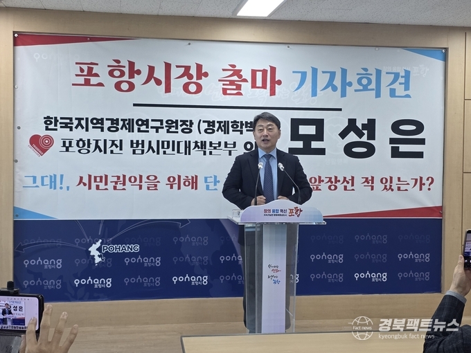 경북팩트뉴스 남유신 기자 | 모성은 포항지진범시민대책본부 의장(경제학 박사)이 지난 8일 시청 브리핑룸에서 기자회견을 열고, 촉발지진으로 빼앗긴 시민 권익 회복과 도산 위기에 빠진 지역 경제를 살리기 위해 포항시장 출마를 공식 선언했다.
