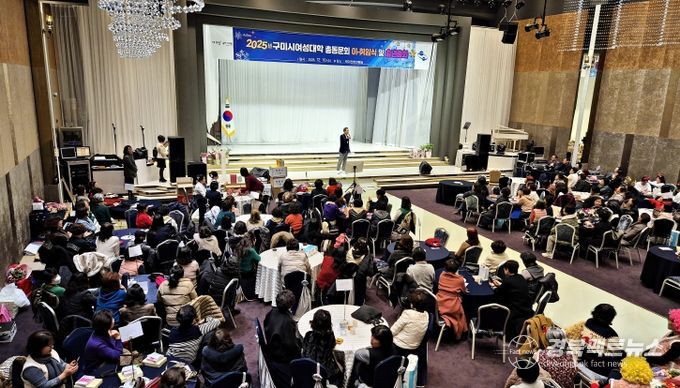 경북팩트뉴스 조현묵 기자 | 구미시여성대학 총동문회는 지난 10일 제이컨벤션웨딩에서 총동문회원 200여 명이 참석한 가운데 ‘2025년 회장 이‧취임식 및 총회’를 열었다.