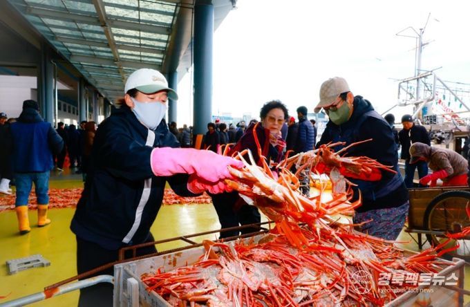 경북팩트뉴스 남유신 기자 | 차가운 겨울 바다의 진미 울진대게가 죽변항과 후포항을 붉게 물들인다.