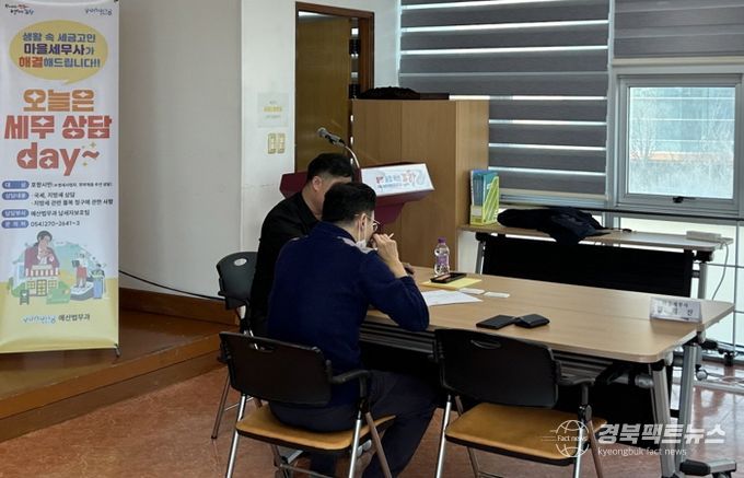 경북팩트뉴스 남유신 기자 | 포항시는 지난 19일 두호동 행정복지센터에서 시민들의 세금 고민을 해결해 주는 ‘찾아가는 마을세무사 상담 데이’를 개최했다.