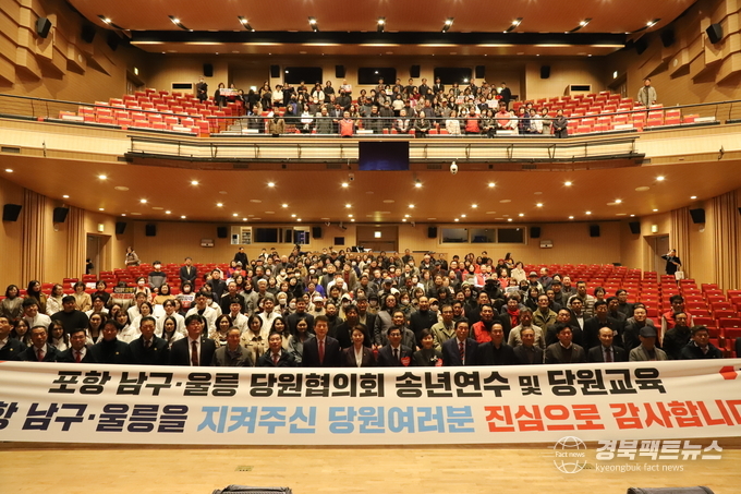 경북팩트뉴스 남유신 기자 | 국민의힘 포항시 남구·울릉군 당원협의회(당협위원장 이상휘 국회의원)는 20일 포항시 남구 효자아트홀에서 당원 1,000여 명이 참석한 가운데 ‘감사와 민주당 악법 규탄’을 주제로 송년연수 및 당원교육을 개최했다.