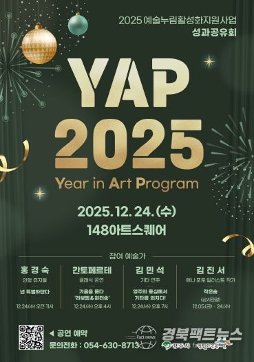 경북팩트뉴스 남유신 기자 | (재)영주문화관광재단은 오는 12월 24일 148아트스퀘어에서 크리스마스 컨셉의 ‘2025 예술누림활성화 지원사업 성과공유회 'YAP 2025'’를 개최할 예정이다.