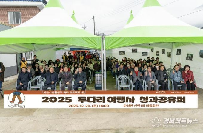 경북팩트뉴스 남유신 기자 | 문경시 마성면 신현1리 주민회는 지난 20일 마을회관에서 사업 참여자와 신현1리 마을주민 등 100여 명이 참석한 가운데 2025년 1시군-1생활인구 특화 프로젝트의 일환으로 추진된 지역살이 프로그램‘두다리 여행사’ 성과공유회를 가졌다.