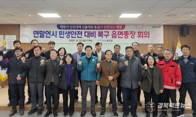 경북팩트뉴스 남유신 기자 | 포항시 북구청은 22일 북구청 회의실에서 ‘2026년 해맞이 안전 및 질서유지 등 당면 현안 업무를 위한 읍면동장 회의’를 개최하고, 연말연시 해맞이 명소 안전관리 대책과 읍면동별 대응 현황을 집중 점검했다.