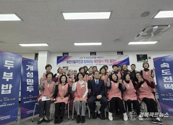 경북팩트뉴스 남유신 기자 | 민주평화통일자문회의 문경시협의회는 지난 18일 문경시 흥덕종합복지관 조리실에서 북한이탈주민 등 여성자문위원들 50여 명과 함께 ‘남과 북 여성의 손맛을 체험하다’라는 주제로 북한 음식 쿠킹클래스를 진행했다.