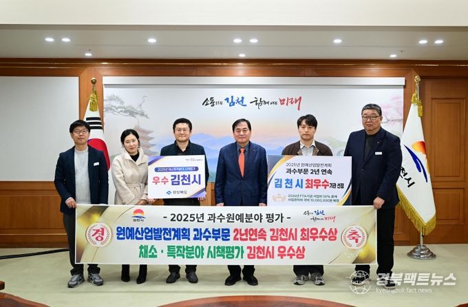 경북팩트뉴스 남유신 기자 | 김천시가 올해 농식품부 주관 원예산업발전계획 과수부문 연차평가에서 지난해에 이어 2년 연속 1등급(최우수) 기관으로 선정되며 과수산업 경쟁력을 다시 한번 입증했다.