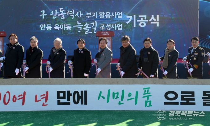 경북팩트뉴스 남유신 기자 | 안동시는 12월 26일 구 안동역사부지 내 다목적공연장에서 ‘(구)안동역사부지 활용사업 및 안동 옥야동 늘솔길 조성사업’ 기공식을 개최하고, 본격적인 공사에 착수했다.