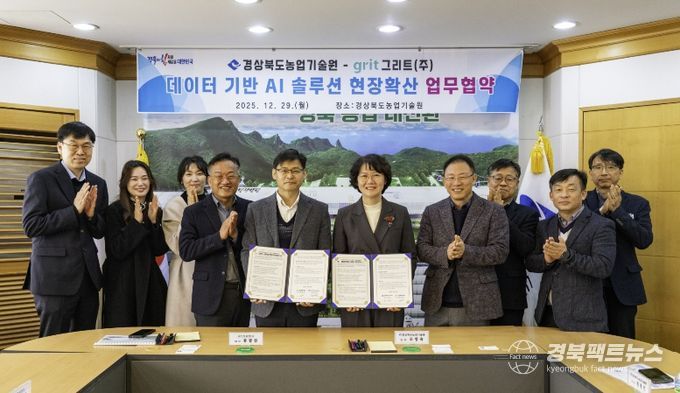 조영숙 경상북도농업기술원장은 “이번 협약은 2026년 인공지능 디지털농업 원년의 출발점으로 경북 농업의 디지털 전환을 가속화하는 기폭제가 될 것”이라며, “그리트㈜의 우수한 AI 기술로 농가소득 증대와 노동력 절감에 이바지할 수 있도록 최선을 다하겠다”고 밝혔다.