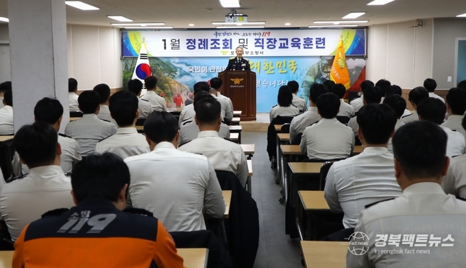 경북팩트뉴스 남유신 기자 | 포항북부소방서(서장 김장수)는 5일 오전, 별관 3층 대회의실에서 직원 100여 명이 참석한 가운데 2026년 새해 첫 정례조회를 개최했다.
