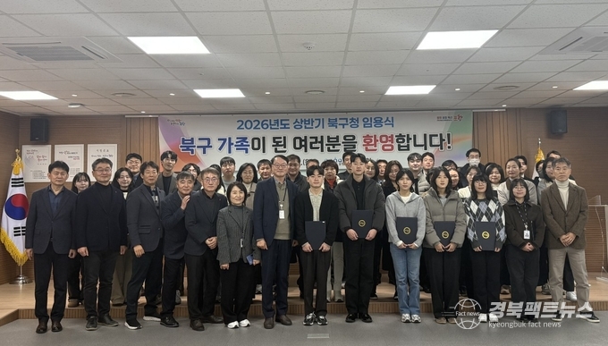 경북팩트뉴스 남유신 기자 | 포항시 북구청은 12일 북구청 회의실에서 2026년 상반기 정기인사에 따른 임용식을 열고, 새롭게 보직을 받은 직원들에게 임용장을 수여했다.