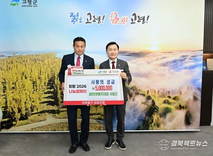 이에 군 관계자는 “매 순간 지역 사회를 위해 헌신하고 나눔을 실천해 주시는 분들 덕분에 고령군이 더욱 따뜻해지고 있다.”며 “기탁해주신 성금은 복지 사각지대 해소를 위해 꼭 필요한 곳에 전달하겠다.”고 감사의 뜻을 전했다.