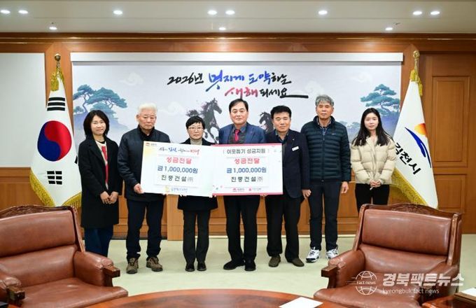 한편, 기탁된 성금은 경북사회복지공동모금회와 김천복지재단으로 각각 전달되어 관내 취약계층과 복지 사각지대 해소를 위한 다양한 사업에 사용될 예정이다.