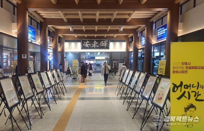 경북팩트뉴스 남유신 기자 | 안동시는 성인문해교육 학습자들의 배움의 결실을 시민과 공유하기 위해 성인문해교육 시화전 ‘어머니의 시간’ 2차 전시를 1월 15일부터 2월 7일까지 KTX 안동역 로비에서 개최한다.