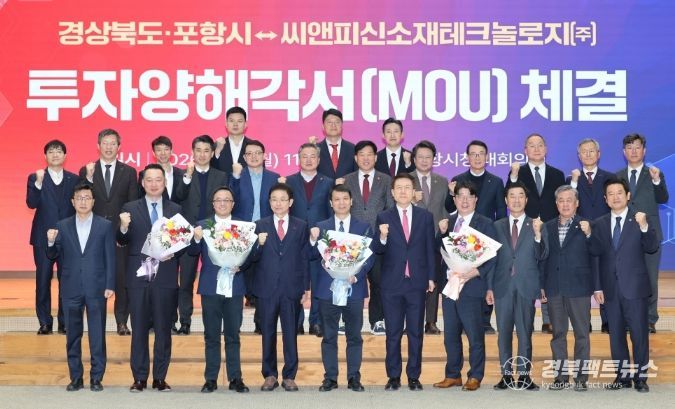 경북팩트뉴스 남유신 기자 | 포항시와 경상북도는 19일 포항시청 대회의실에서 씨앤피신소재테크놀로지㈜와 5,000억 원 규모의 투자양해각서(MOU)를 체결했다.