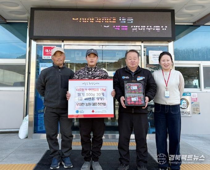 경북팩트뉴스 남유신 기자 | 청송군 안덕면 소재 우와한 농원 허안열 대표가 지역 내 어려운 이웃들을 위해 지난 20일, 직접 재배한 싱싱한 딸기 500g 30팩을 안덕면에 전달했다.