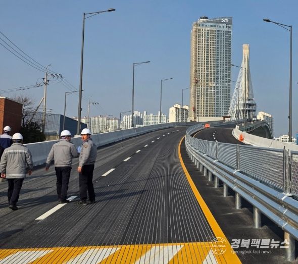 경북팩트뉴스 남유신 기자 | 포항시는 효자~상원 간 도로건설 공사의 핵심 구간인 해오름대교의 임시 개통을 앞두고 시민 안전과 원활한 차량 흐름을 위한 교통시스템 점검을 실시했다.