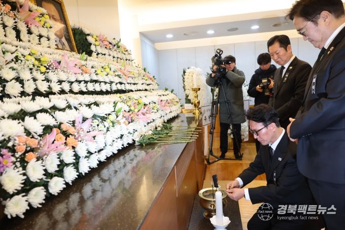 경북팩트뉴스 황혜경 기자 | 김민석 국무총리가 27일 종로구 서울대학교병원 장례식장에서 故 이해찬 민주평통 수석부의장의 빈소를 조문하고 있다.