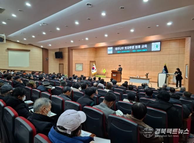 경북팩트뉴스 남유신 기자 | 경산시는 28일 농업기술센터에서 관내 대추 농가를 대상으로 대추나무빗자루병 확산을 예방하기 위해 방제 교육을 실시했다.
