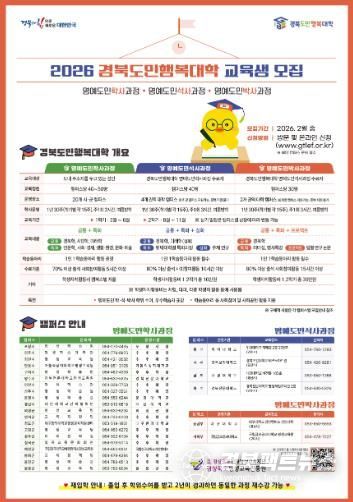 김호정 선비인재양성과장은 “경북도민행복대학은 시민들이 새로운 배움과 공동체 활동을 통해 인생 2막을 설계할 수 있는 소중한 기회”라며 “시민 여러분의 많은 관심과 참여를 바란다”고 말했다.