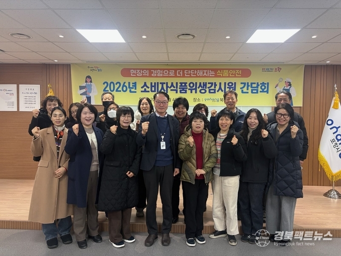 경북팩트뉴스 남유신 기자 | 포항시 북구청은 4일, 2026년 소비자식품위생감시원을 대상으로 간담회를 개최하고, 연간 식품안전관리 추진계획을 공유하며 현장 중심의 식품위생 관리 강화 방안을 논의했다고 밝혔다.