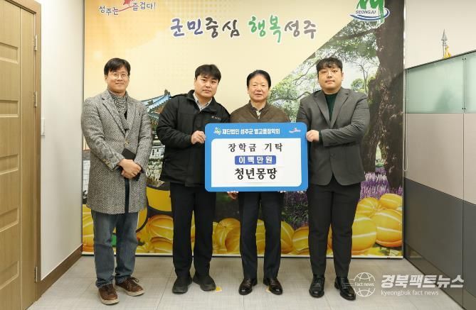 경북팩트뉴스 남유신 기자 | 지난 4일 (재)성주군별고을장학회에 청년몽땅 2백만원, 성주한우청년교류회에서 1백만원의 장학금을 지역인재를 위해 기탁했다.