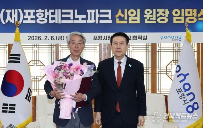 경북팩트뉴스 남유신 기자 | 포항시는 6일 시청 대외협력실에서 임명식을 열고 포항테크노파크 제10대 원장으로 송경창 前 경상북도경제진흥원장을 임명했다.